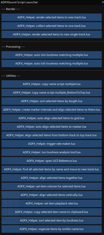 Configurable floating GUI with arrangeable, easily executable buttons; for ones growing list of scripts